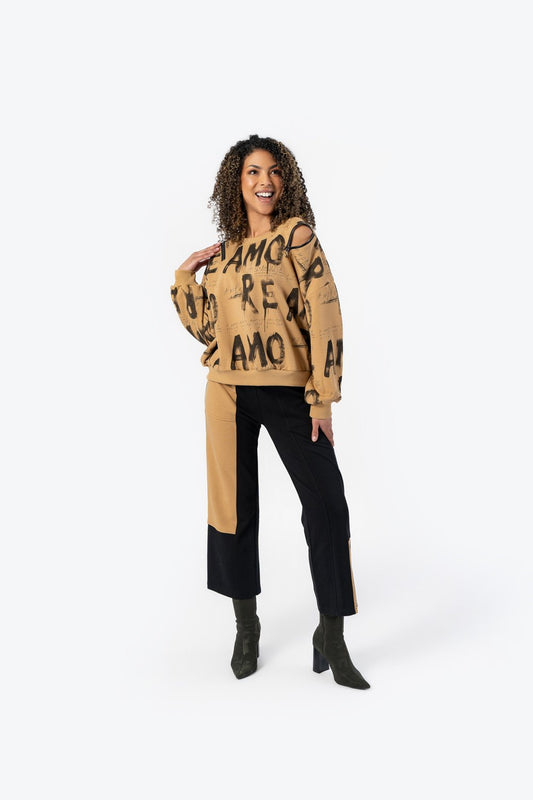 ANGII | FRAYED CREW NECK SWEATER BLACK