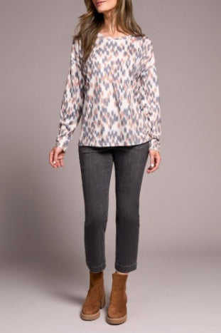 CREW NECK COMBO PRINT KNIT TOP-ALMOND LATTE