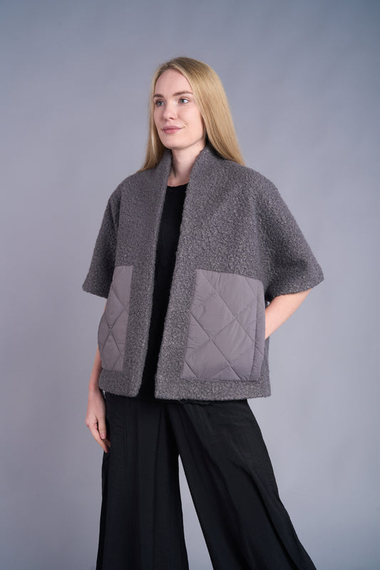 Solid Patch Grey Open Jacket