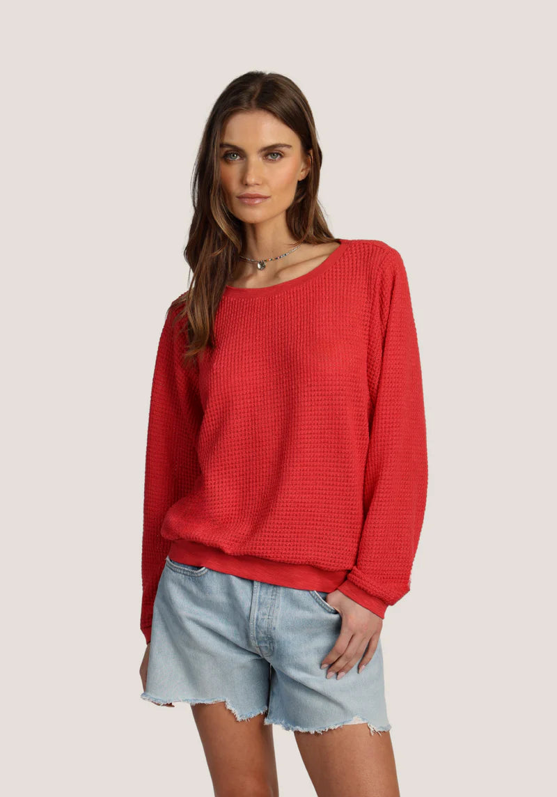 Level up your knits in the Covet crochet top. Soft knit crochet with matching rib trim at the neck and cuffs. Easy effortless and on-trend.