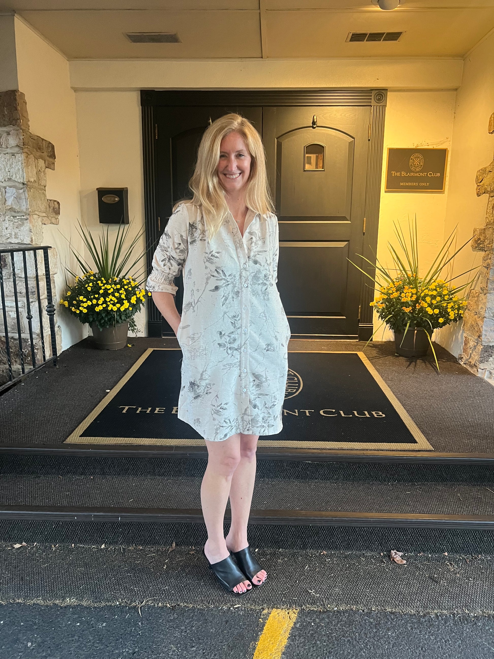 Effortlessly chic and easy to wear, the floral shirt dress features, a relaxed, silhouette, the soft, neutral floral print designed with a classic collar, button front, and three-quarter length sleeves, this lightweight dress transitions perfectly from weekday to weekend. Pair with boots for a casual fall look or dress it up with heels for an elevated touch.