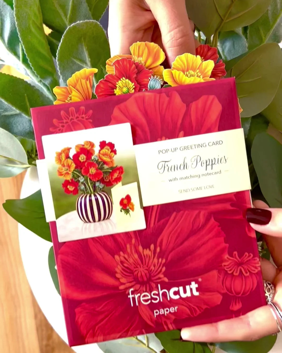 Overflowing with warmth, vibrancy, and meaning, FreshCut Paper’s Mini French Poppies leave a big impression with little petals. Glimmering with hues of tangerine, copper, and ruby reds, this coquettish bouquet is the perfect gift for all of the different loves in your life, big and small. Comes with coordinating, 2.5" x 3.5" blank note card and vibrant mailing envelope.