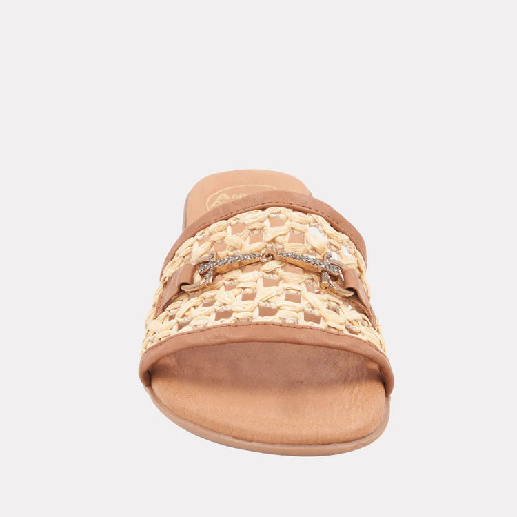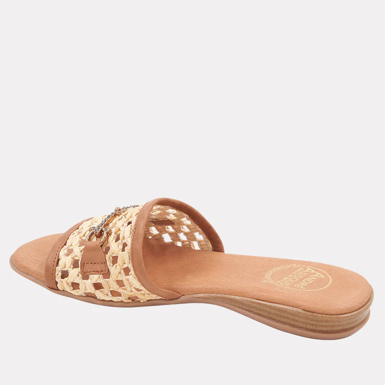 Niles is a refined slip-on slide crafted from textured raffia, blending casual style with a polished look. Perfect for the office or a brunch date, this fashion-forward sandal adds versatility to both work and social outfits.