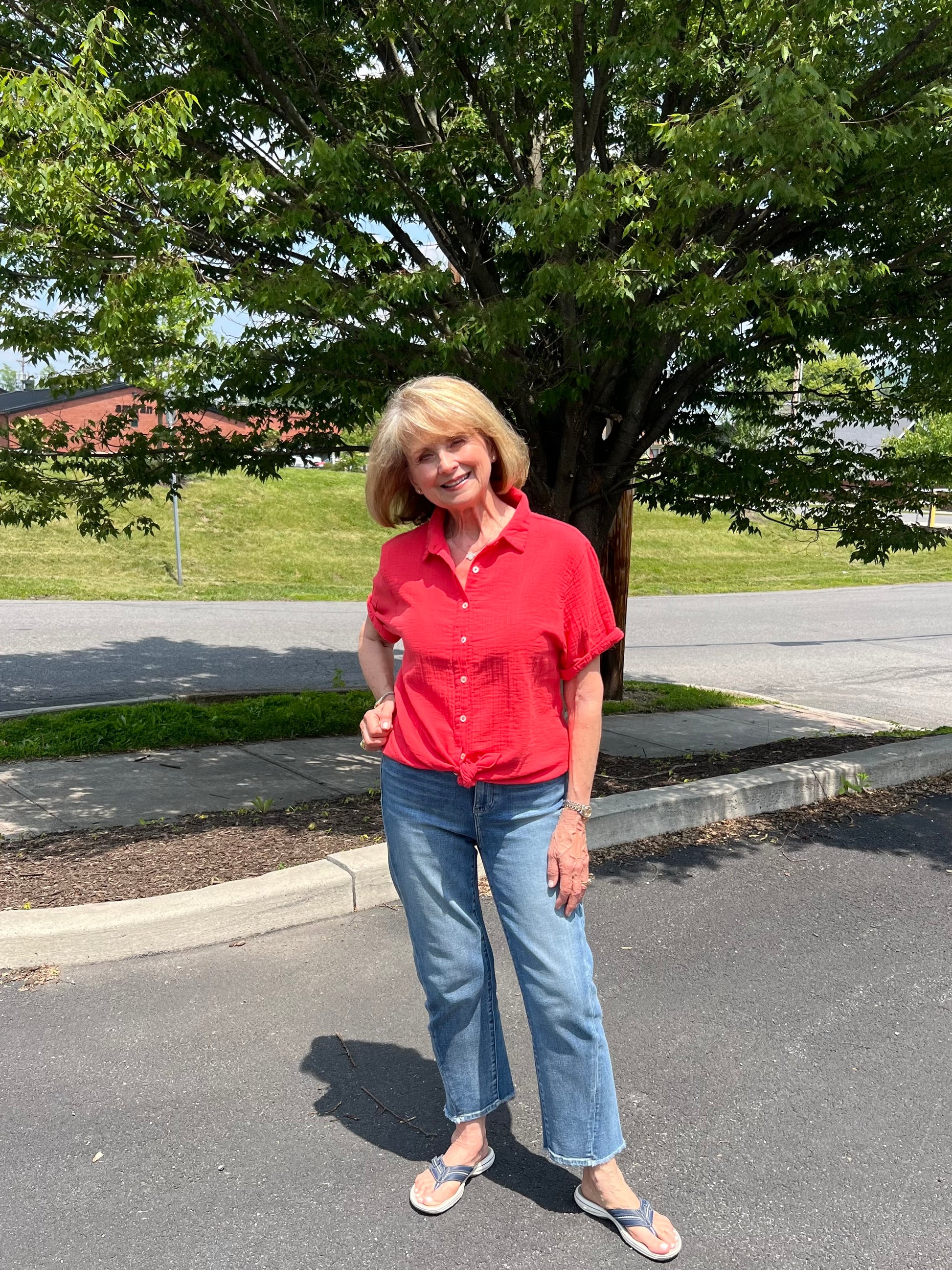 Turn up the heat in this perfectly lightweight button-down in a bold poppy-red. Made from breezy puckered cotton, it's got that effortless summer vibe with a polished twist- thanks to the rolled-edge short-sleeves. Style it with white denim for a crisp daytime look or toss it over a swimsuit as a chic beach coverup. From boardwalk strolls to coffee runs, this one's ready for all your sunny-day plans.